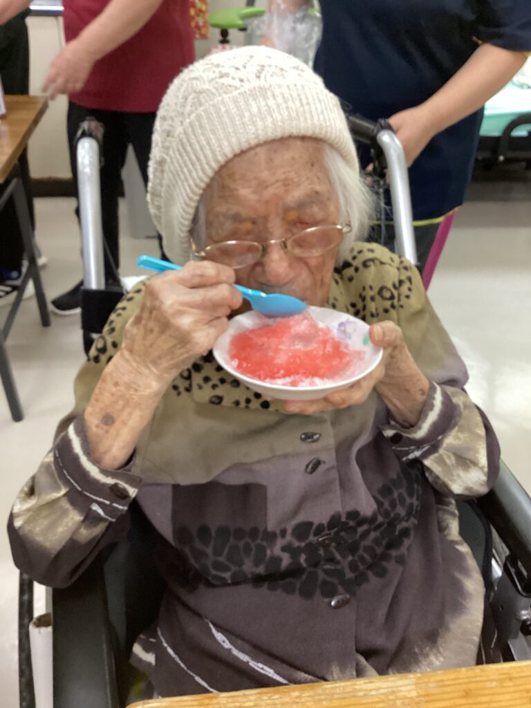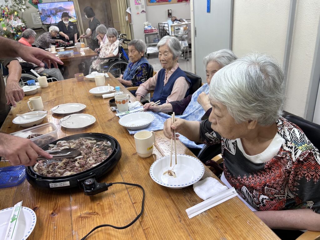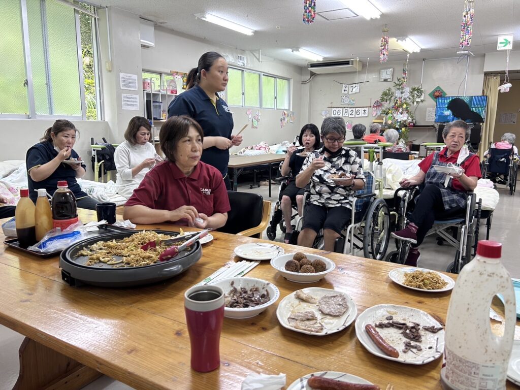今年は海でビーチパーティをしよう!と計画していましたが、なんせこの猛暑。。。利用者さんの健康を第一に考え、施設内でBBQをしました!いつもと違うお食事に利用者さんも喜んでいつもは「お肉固い」と残す方もいましたが、この日はパクパク!「早く焼いて~」と催促されてました。職員も利用者さんがお昼寝中にBBQ頂きました。おやつはかき氷にしました!