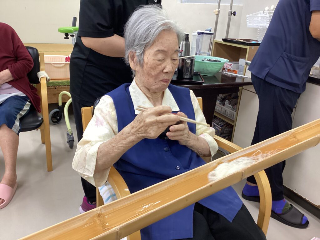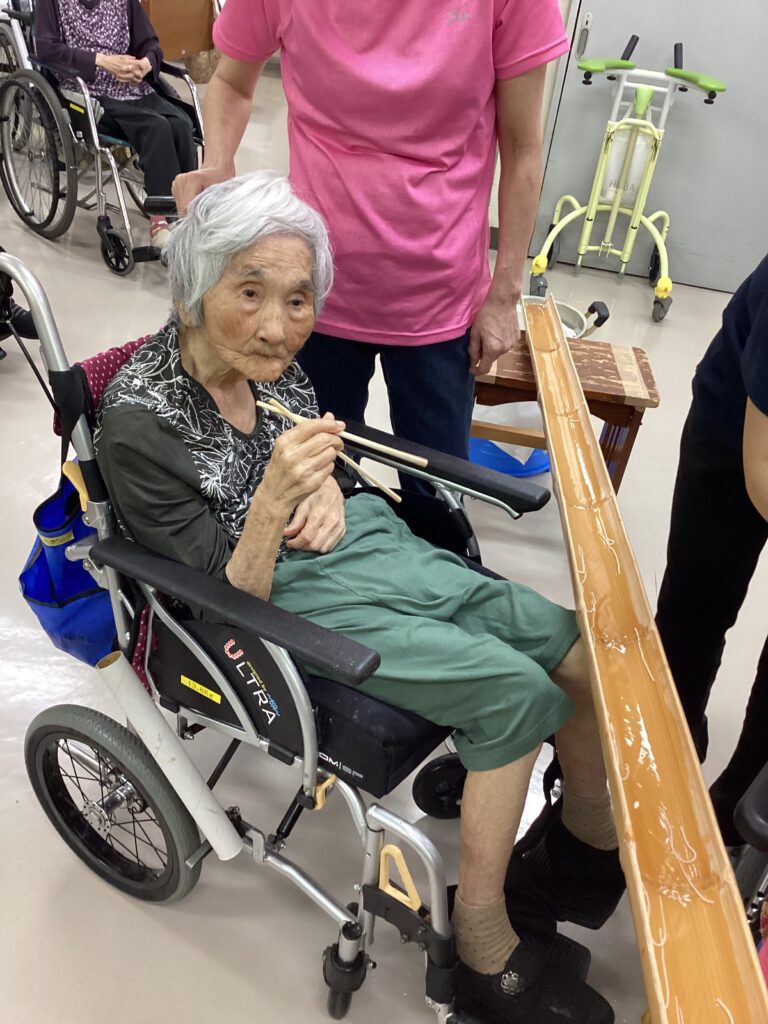 そうめん流すやつ 2025年8月21日 最終更新日時 : 2025年8月21日 majikina02 利用者さんからの「そろそろあれしないの~そうめん流すやつ」とリクエストがあり、今年も流しそうめんを開催しました!取るのに夢中で食べるのを忘れる方やめんつゆを飲み干す方、今年もおもしろおかしくそうめん流すやつ。出来ました!